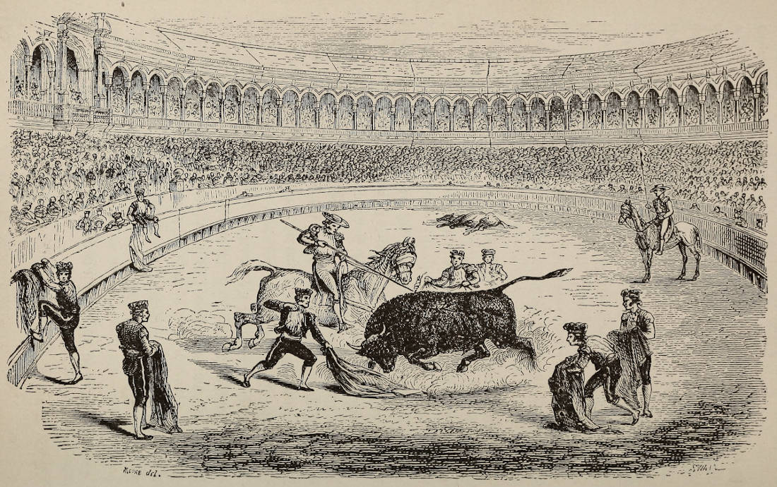 Delicious Climate.—Customs.—Exile of the Moors.—Consequent Decay.—The Alcazar.—Barbaric Splendor.—A Christian Kingdom.—Cathedral.—A House of God.—Giant Columns.—High Mass.—Unconscious Worshipper.—Beautiful Women.—Venus-worship.—Port of Seville.—Fruits.—Don Juan.—Barber of Seville.—Murillo’s House.—Mosaics.—Moorish Castle.—Auto-da-fé.—The Quemadaro.—Field of St. Sebastian.—Circulation of the Bible.—Tower of Gold.—Treasure House.—Prison.—Bins of Gold.—Decline and Fall of Spain.—Demoralizing Influences.—Corruption and Robbery.—Yellow Fever.—Guadalquiver.—Amphitheatre.—A Delicate Lady.—Warlike Husband.—Her Description of a Bull-fight.—The Ring.—Spectators.—Trumpet-blast.—Picadors.—Entrance of the Bull.—Charge.—Horseman.—Terrible Sight.—Chulos.—Banderilleros.—Squibs.—Matador.—Applause.—The Ladies.—Different Tastes.—Squeamish Husband