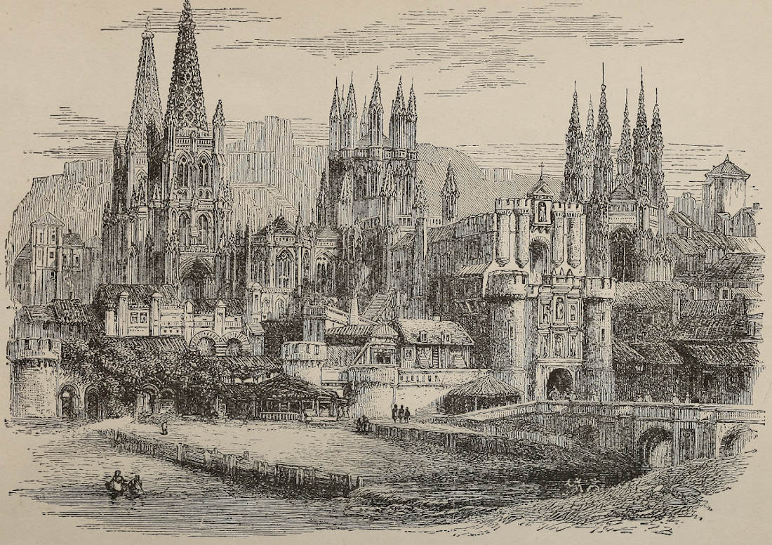 A sleepy Town.—Origin of the Name.—Fusion of the Crowns of Leon and Castile.—The Coffer of the Cid.—Swindling a Jew.—Moorish Lies.—Hotels.—A Change of Base.—The Cathedral.—Statues.—Carvings.—Verdict of Charles V. and Philip II.—Devil beating the Railroad.—Carving by Nicodemus.—Miracles.—Castle.—Engineer hoisted by his own Petard.—Burgos Taverns.—Philip II. His Character.—Conception xiiof a Palace, Monastery, and Tomb.—The Escorial.—Dimensions.—St. Lawrence.—Turning-point of his Life.—Description of the Palace.—Death of Philip II.—Mausoleum.—The Sagrario.—A toe-tal Loss.—Cellini Crucifix.—Library