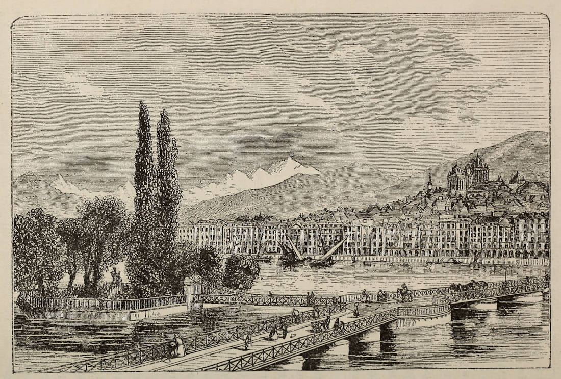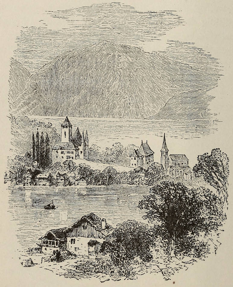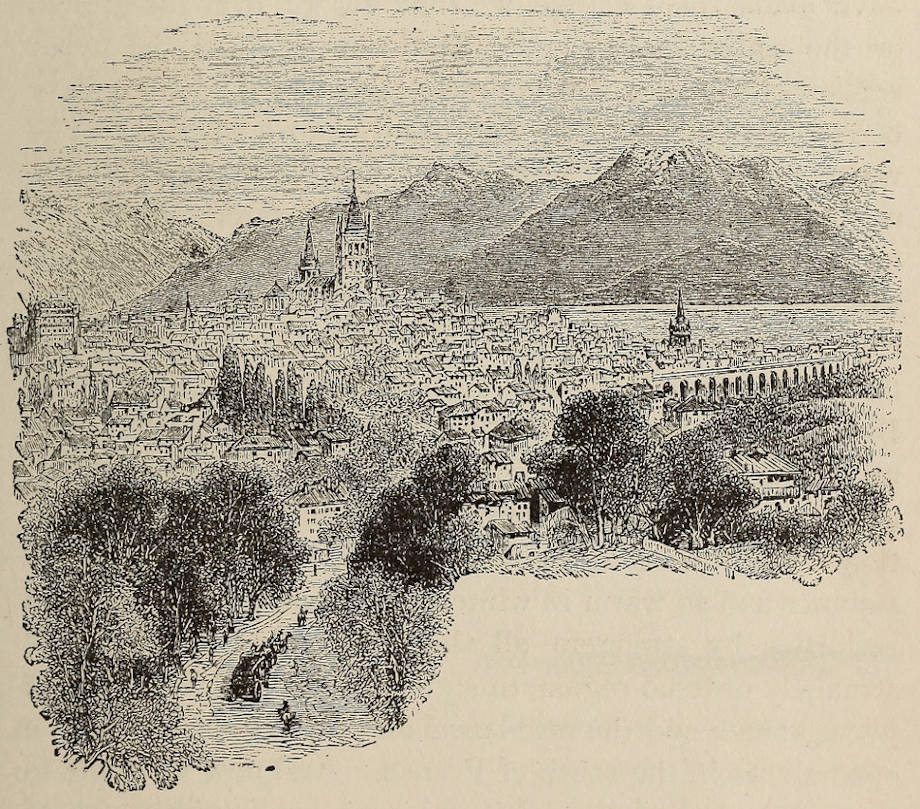Geneva.—Color of the Rhone.—Cæsar’s Wall.—Cathedral.—Calvin.—Lady Jane Grey.—Rousseau.—Voltaire.—Madame de Stael.—Byron.—Jura.—Mont Blanc.—Celebrities.—Coppet.—Ninon.—St. Protais.—Lisus.—Morges.—Grand Muveran.—Diablerets.—Mont Rosa.—Mont Blanc.—Lausanne.—St. Anne.—Sacred Rat.—Cathedral.—Convention of Reformers.—Gibbon.—Classic Ground.—Chillon.—Bonnivard.—Torture Chamber.—Hotel Byron.—Railroad.—Ice.—Swiss Valleys.—Freyburg.—Suspension Bridge.—Great Organ.—Cathedral.—Wonderful Music: its Power and Sweetness.—Berne.—Morat.—Burgundian Custom.—Public Bears.—Unfortunate Englishman.—Curious Clock.—Market Women.—Federal Palace.—Swiss Cantons.—Bernese Alps.—Thun.—Jungfrau