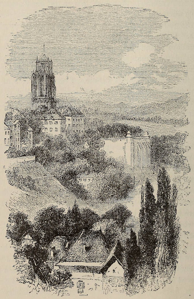 Close by the hotel stands an ancient church, well preserved, and very interesting. The pastor resides five miles away; but he arrived at the hotel before service, for the good people of the inn were his parishioners, and they make him welcome every Sunday morning for a little refreshment after his ride and before his labors begin. He was a very fat man, with a face that did not bespeak the scholar and divine any more than did the faces of my lamented friends Bethune and Krebs, both eloquent and learned, but not 454spirituel in their physique. He spoke neither English nor French, and our conversation was, therefore, only of the most general character, patched out of German and Latin.