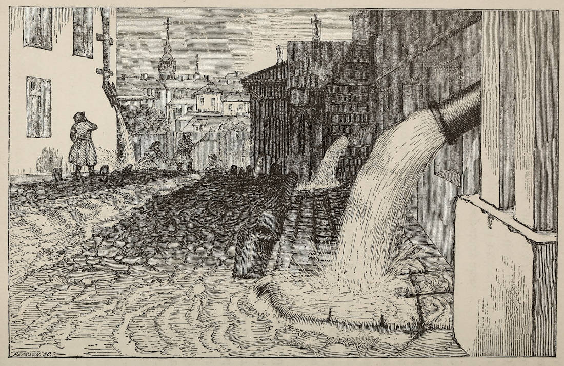 The house at which I am stopping, Hotel du Nord, has rooms for two hundred guests; it is a hollow square, with a balcony on the four sides of the quadrangular court within, and each room on the balcony has a door opening 449upon it. On the piazza of the central building is a platform covered with awning, and surrounded with shrubs and flowers, with a fountain of water playing in the midst. I find in these hyperborean regions the people take pains to adorn their houses with plants and blooming flowers, to cheat themselves with the pleasing delusion that they are just as well off as those who dwell in more genial climes. This is true of the dwellers in the cities, and in the rural villages also, where I have noticed that windows are filled with plants exposed to the sun and the passer’s eye.