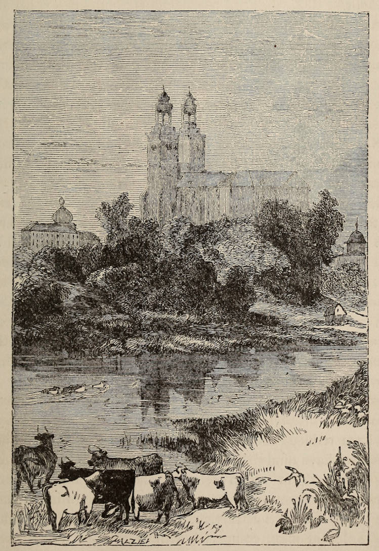 At ten o’clock at night, and while it was yet light, we reached the steamer at Corseow. It was a large, commodious, and well-furnished vessel, excepting that it had no state-rooms. The berths were good, but were all in one open cabin. The decks were crowded with live-stock,—pigs, calves, cows,—whose squeals, bleating, and moaning were to be our serenade till the morning light. A bountiful supper was served,—tea and coffee, meats, eggs, &c.,—and the charge for the whole was twenty-seven cents! And this being over, I spent the livelong night fighting, not wild beasts, nor the tame ones overhead, but those pestering fleas, which seem to be one of the pet annoyances of the travelling world.