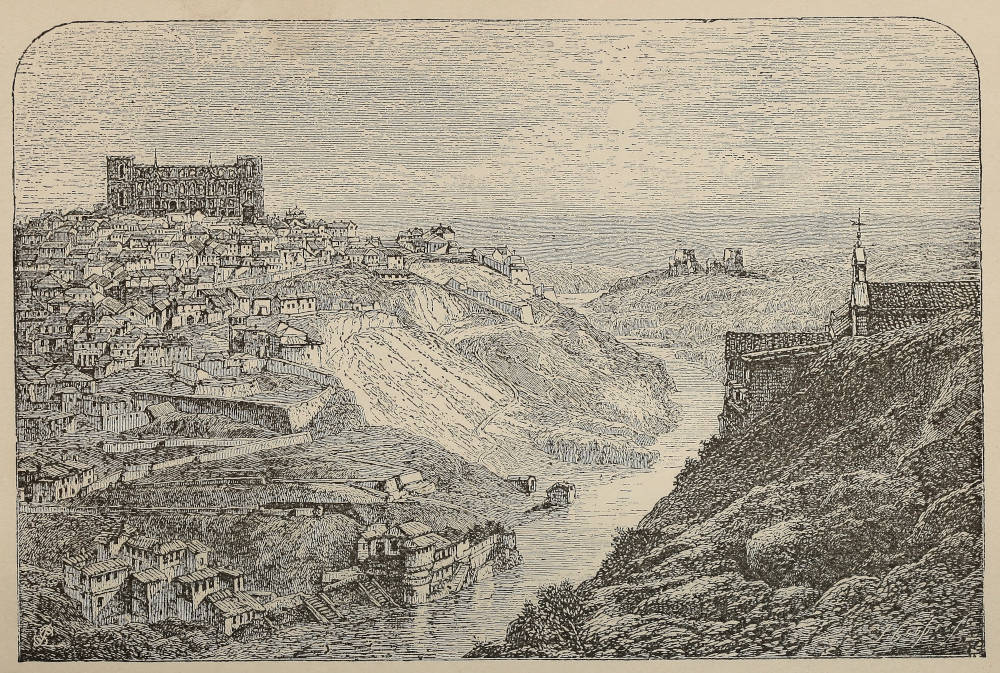Progress.—Hotel Lino.—The wicked Flea.—Easy Manners.—Breakfast.—Model Landlord and Waiters.—Toledo Butter.—City xiiiset on a Hill.—Monuments of departed Peoples.—Romance.—Architecture.—Oldest City in the World.—Mythic Founders.—Perfidy of Roderick.—Reign of the Archbishops.—Decline of Power and Glory.—Cathedral.—Descent of the Virgin.—A fair Penitent.—Orthodoxy of the Priesthood.—Burning of the Missals.—The Muzarabe.—The dead Lion better than a living Dog.—Eloquent Epitaph.—Honors paid the Virgin.—The Alcazar.—Derivation of Mango.—Spanish Pride.—Peacocks.—Foreign Impressions.—Moorish Gates.—San Juan de los Reyes.—Thank-offerings.—St. Florinde.—Cave of Hercules.—Legend of the Cid.—Café.—Toledo Blades.—Virtues of the Tagus.—Sword of Boabdil.—Lunatic Asylum.—Don Quixote.—Crazy Editors.—Statistics.—Causes of Insanity.—Spanish Slowness and Temperance.—Sophomores