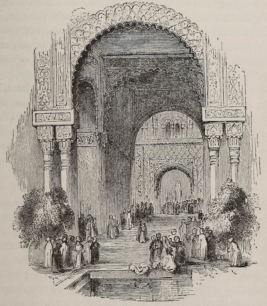 Lodgings at the Alhambra.—Restoration.—Webs of Falsehood.—The Sierra Nevada Mountains.—Fruits.—Progress of the Peasantry.—The Moors.—Adam’s Visit to Spain.—Expulsion of the Moors.—Decline of the Empire.—Railroads.—Mines.—Early Settlers.—Iberians.—Phœnicians.—Goths.—Moors.—Waning of the Crescent.—Capture of Cordova.—Flight of the last Moorish King