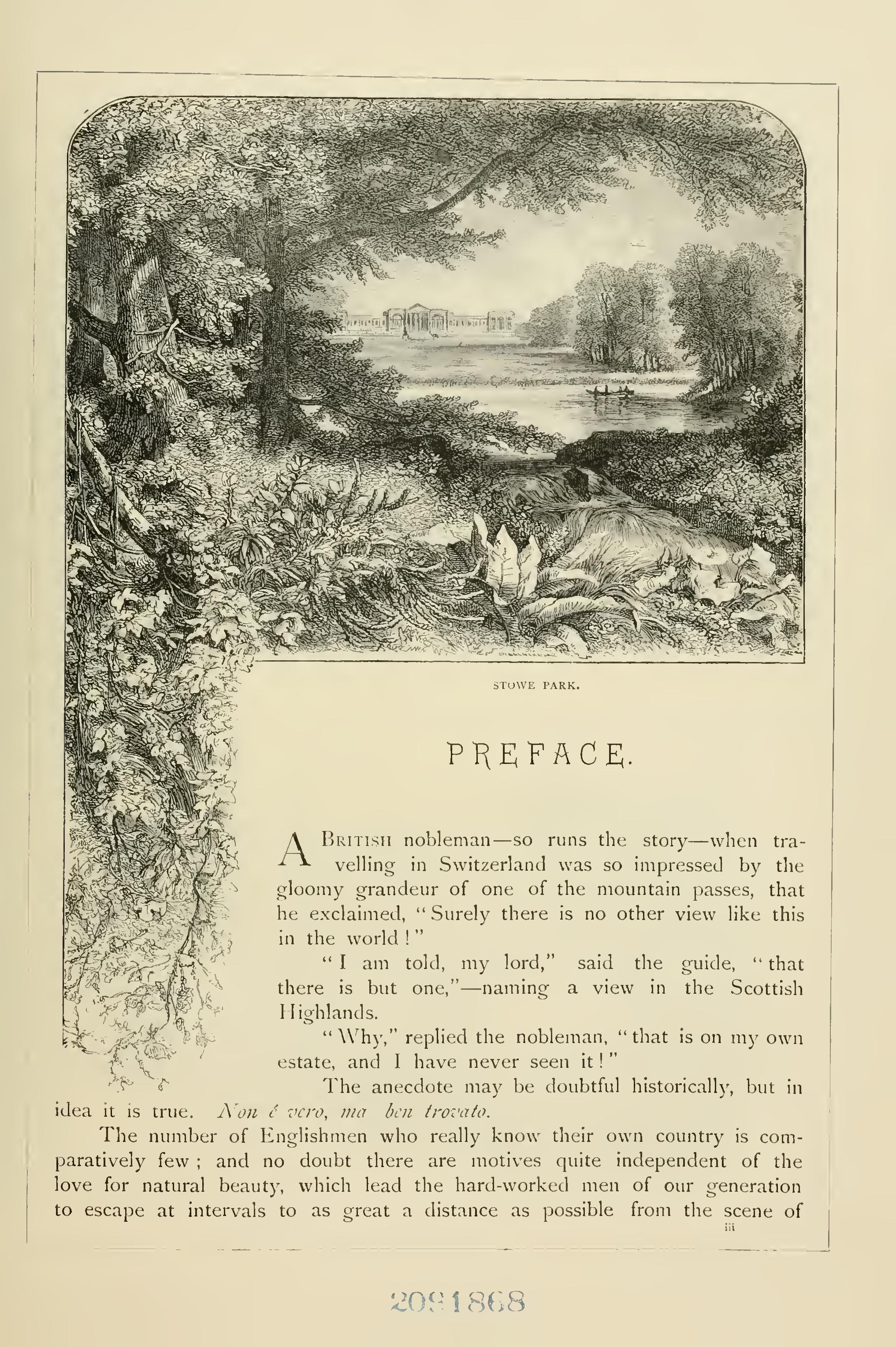 The volume now in the reader's hand is intended to recall, by the aid of pen and pencil, some English scenes in which such refreshing influences have in the past been enjoyed. And, as every wanderer over English ground finds himself in the footsteps of the great and good, ample use has been made of the biographical and literary associations which these scenes continually recall.