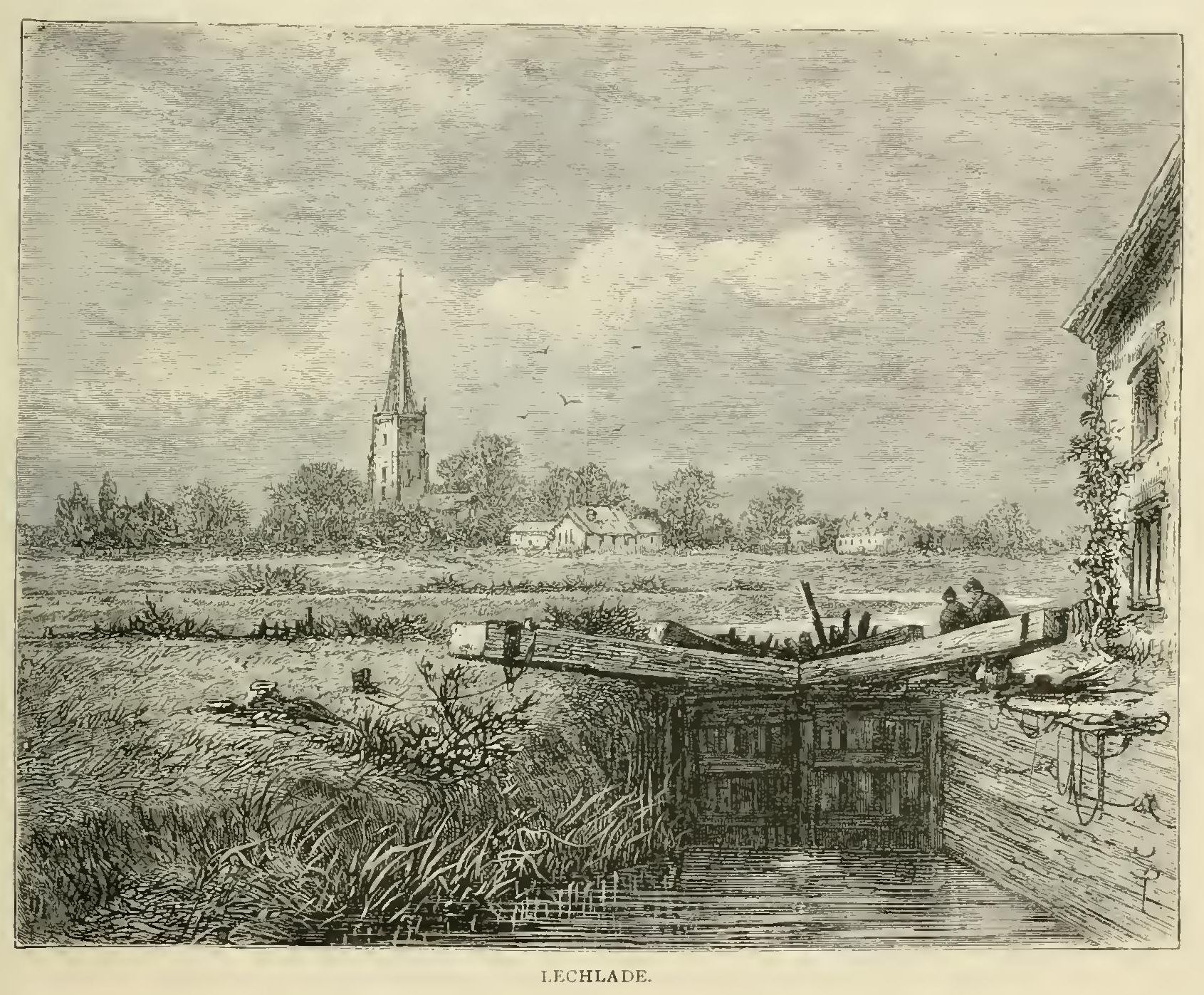 The confluence of these streams with the Thames at Lechlade makes the river navigable for barges; and from this point it sets up a towingpath. At this point also end may be seen—a distant glimmering circle—from the other. Then the canal pursues a level course for some miles, and descends about 130 feet to the Thames at Lechlade, having traversed in all a distance of rather more than thirty miles.