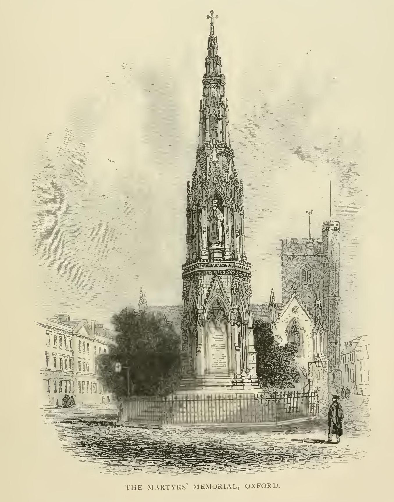 Oxford is probably Ousenford—the ford over the Ouse or "Water." Its waters indeed are many, and almost labyrinthine; but we get clear of the river at Hythe Bridge, and care for awhile only to explore Colleges, Halls, and Libraries; pausing before the Martyrs' Memorial, to breathe the hope that "the candle" once lighted there may still brightly burn, while Keble College, farther on, is a memorial of one, who though of another school of thought from ourselves, has given musical and touching expressions tu the deepest thoughts of devout hearts.