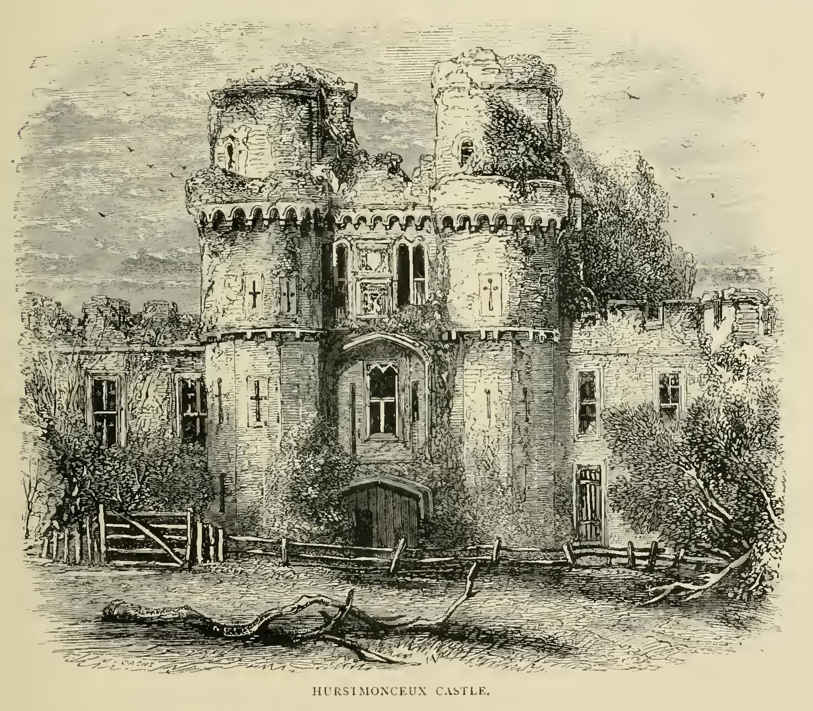 The view from the "Lilburn's Tower" in this ruined castle, commanding landwards the broad purple moors, extending in many an undulation to the rounded Cheviots, glimmering blue in the distance, and looking seawards over the restless ocean, beating ever at the foot of the black columns, while sea-birds are ceaselessly wheeling in mid air with shrill outcries, not unfairly vies with the wild magnificence of Tintagel, as described in our earlier pages.