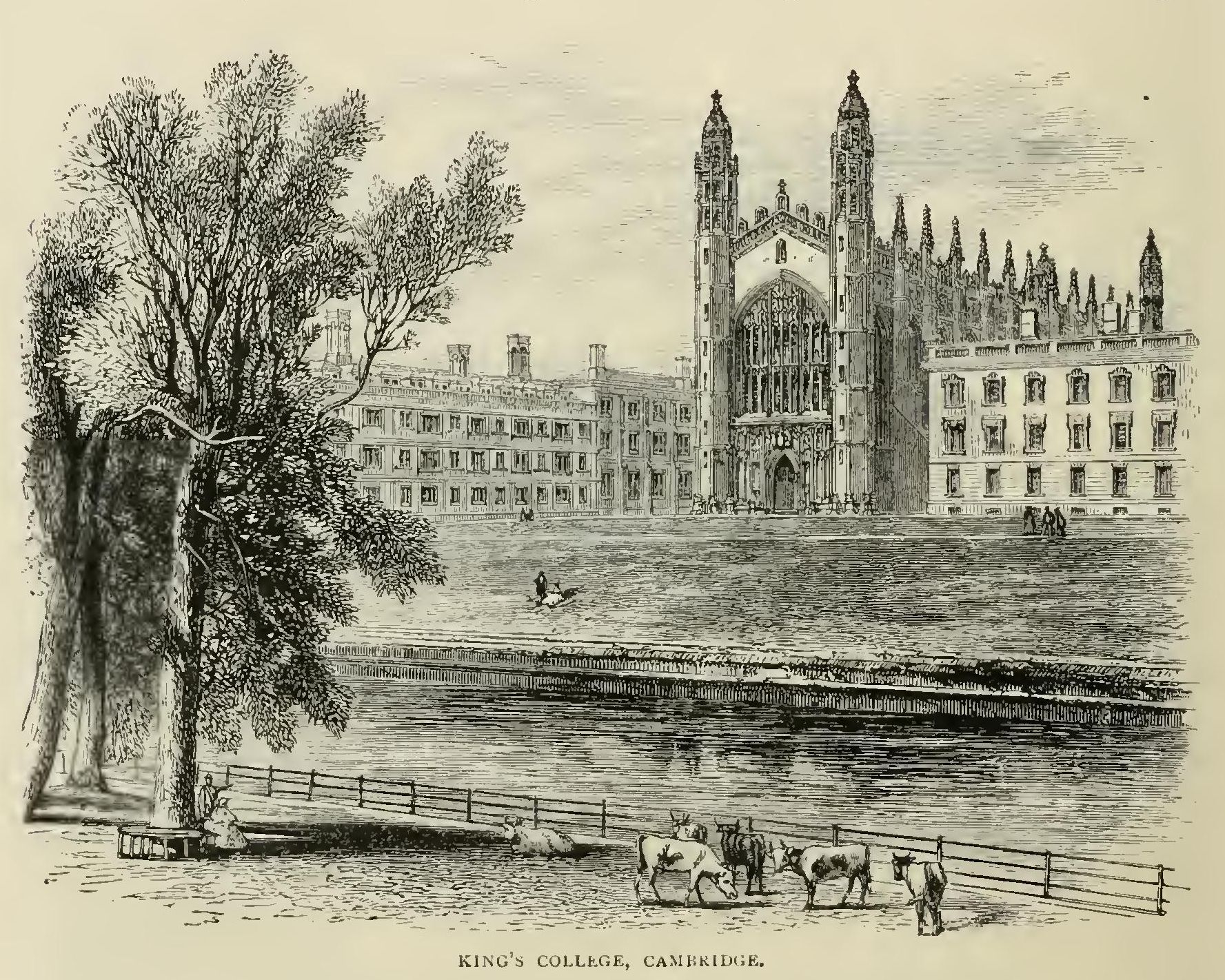 The impression which the first sight of this fair and ancient city makes upon the stranger is probably unique, in whatever direction he first approaches it, and from whatever point he first descries its spires and towers. True, of late years the accessories of the railway invasion, so long resisted by the University authorities, have given a new aspect to the scene; but nothing can quite destroy the stately dignity and venerable calm. The traveller who approaches by the way we are describing, receives the full impression. As he floats along the quiet surface of the river, the stately domes and towers come suddenly in sight, and the green railway embankment in the foreground scarcely impairs the antique beauty of the picture.