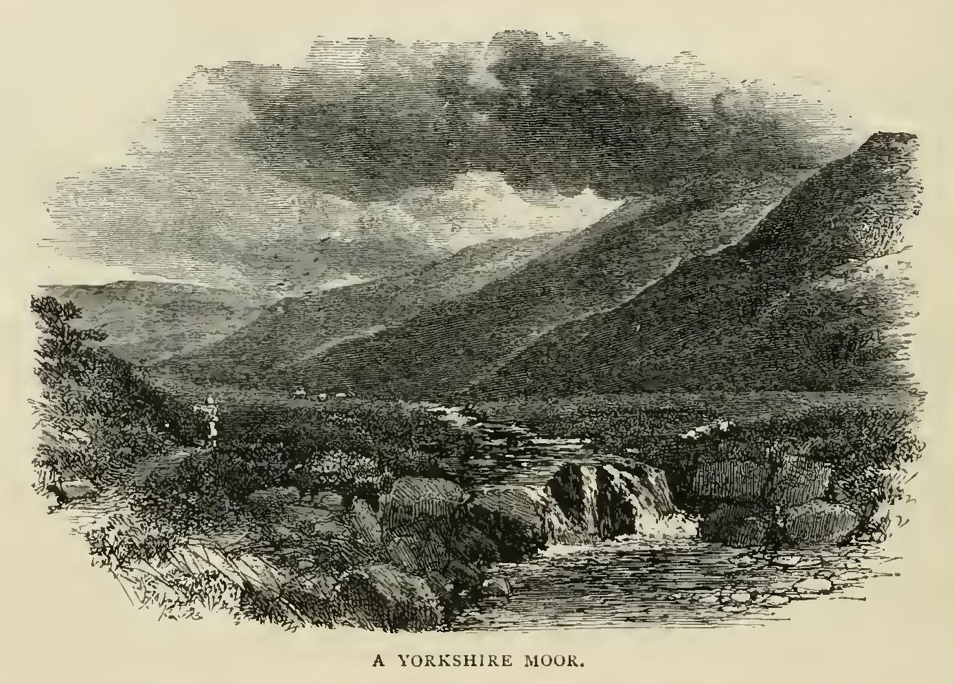 Or again, our traveller, in his pause at Leeds, may take the opportunity of visiting Ilkley, with its fine open moorland, where the brain-wearied worker may range at will. Then, a little way beyond Ilkley, lie the fair woods and noble heights encircling Bolton Abbey, where the Wharfe comes down, as yet unpolluted, from the moorland beyond; while the form of the White Doe of Rylstone, or the memory of the ill-fated heir of Egremont, seems yet to haunt the scene.
