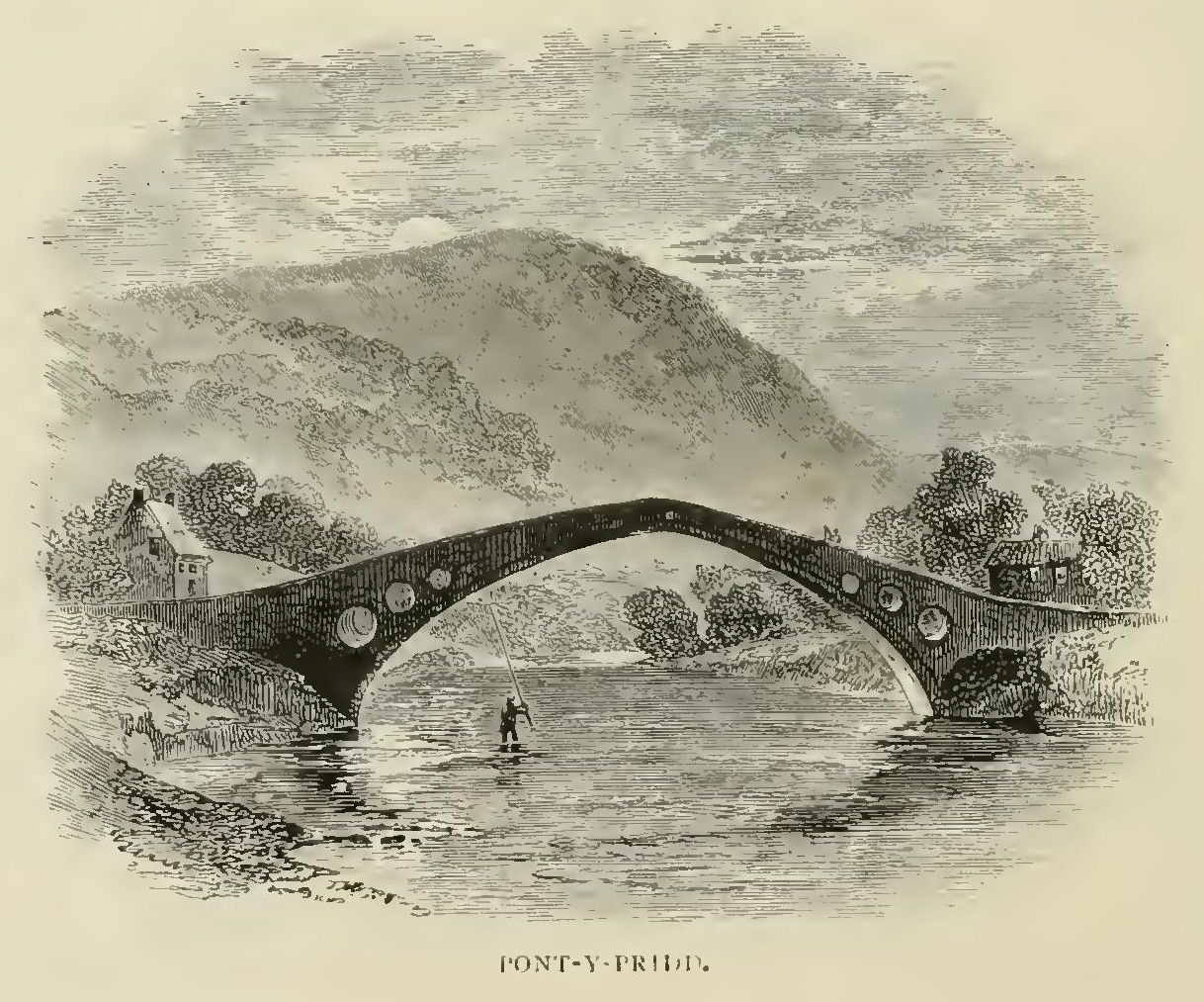 The bridge is of one arch, thrown across the ravine near the point of confluence; it is festooned with drooping ivy, which almost reaches the surface of the stream, and in its secluded loveliness this little Welsh Lauterbrunnen, a village of many waters among the hills, may fairly compare with many scenes far better known to fame.