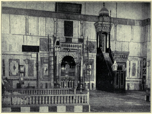 | Interior of the Great Mosque at Damascus. In the center the Mihrab showing the direction of prayer and to the right the Great Pulpit | 106 |