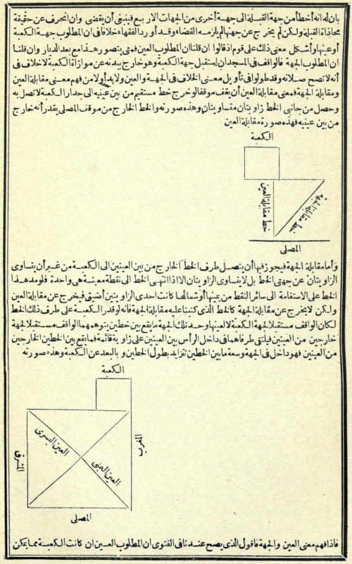 | A facsimile page of the Ihya (Vol. II, page 180, Cairo Ed.). It gives a diagram of the prayer kibla and the rules to be observed in facing it correctly | 180 |