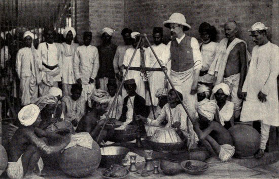 The men who buy in the opium at these monthly auctions and afterwards dispose of it at the Chinese ports are a curious crowd of Parsees, Mohammedans, Hindoos, and Asiatic Jews. Few British names appear in the opium trade to-day. British dignity prefers not to stoop beneath the taking in of profits; it leaves the details of a dirty business to dirty hands. This is as it has been from the first. The directors of the East India Company, years and years before that splendid corporation relinquished the actual government of India, forbade the sending of its specially-prepared opium direct to China, and advised a trading station on the coast whence the drug might find its way, “without the company being exposed to the disgrace of being engaged in an illicit commerce.”