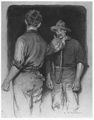 At this point it seemed as if the strain must break one way or the other. The men were not ten yards apart—in another moment it would be less than two. A little gasp of admiration came from the watching groups. Flagg heard this, and his hand wavered, but he recovered and took a short step forward.
