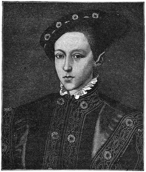| (1) Catharine of Aragon | = | Henry VIII. | = | (2) Anne Boleyn | = | (3) Jane Seymour | = | (4) Anne of Cleves (5) Catherine Howard (6) Catherine Parr |