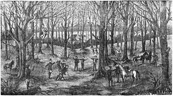 Early in the month of April one of my old war associates, with whom I had passed many a hardship, came to my house and stated that he had received bad news from home; that his sister had been deserted by her husband without any cause, and that the fellow had taken up with a negro woman, and was living with her not more than ten miles off. 287 He requested that I should aid him in taking the couple out and giving them a good flogging.