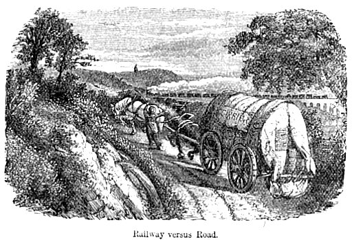 Railways have also proved of great value in connection with the Cheap Postage system. By their means it has become possible to carry letters, newspapers, books and post parcels, in any quantity, expeditiously, and cheaply. The Liverpool and Manchester line was no sooner opened in 1830, than the Post Office authorities recognised its utility, and used it for carrying the mails between the two towns. When the London and Birmingham line was opened eight years later, mail trains were at once put on,—the directors undertaking to perform the distance of 113 miles within 5 hours by day and 5½ hours by night. As additional lines were opened, the old four-horse mail coaches were gradually discontinued, until in 1858, the last of them, the “Derby Dilly,” which ran between Manchester and Derby, was taken off on the opening of the Midland line to Rowsley.