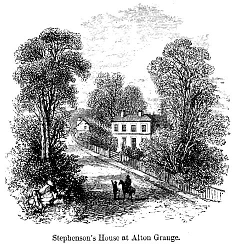 [129] The story has been told that George was a former suitor of Miss Hindmarsh, while occupying the position of a humble workman at Black Callerton, but that having been rejected by her, he made love to and married Fanny Henderson; and that long after the death of the latter, when he had become a comparatively thriving man, he again made up to Miss Hindmarsh, and was on the second occasion accepted. This is the popular story, and different versions of it are current. Desirous of ascertaining the facts, the author called on Thomas Hindmarsh, Mrs. Stephenson’s brother, who assured him that George knew nothing of his sister until he (Hindmarsh) introduced him to her, at George’s express request, about the year 1818 or 1819. The author was himself originally attracted by the much more romantic version of the story, and gave publicity to it many years since; but after Mr. Hindmarsh’s explicit statement, he thought fit to adopt the soberer, and perhaps, the truer view.