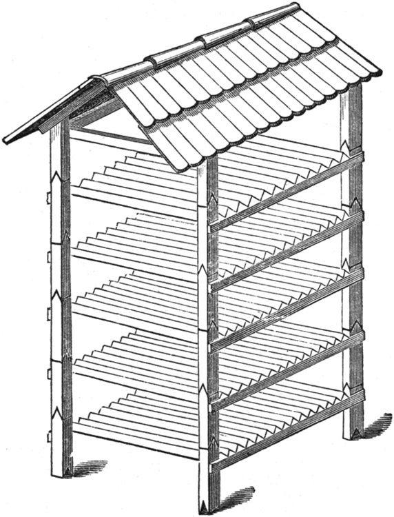 The advantages of this drying kiln are, that it is cheap in construction and working; dries gradually and uniformly; occupies little ground, and runs without intermission.