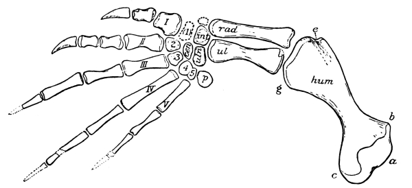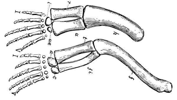 One may sometimes restore extinct animals as in life, knowing fully the shape and structure of the skeleton, and still be far from the real truth. All elephants of the present time have a bare or nearly bare skin. If all that we knew of the extinct mammoth were derived from the [Pg 12] skeleton we should never have suspected that the creature was clothed during life with long and abundant hair, such as has been found with the frozen bodies in Siberia. Nor should we suspect that the dromedary and Bactrian camels of today have large masses of fat on their backs, if we knew only their skeletons. It must therefore be remembered that all restorations of extinct animals, representing them as in life, are merely the sum of our knowledge concerning them, as close approximations to the real truth as it is possible to make. Or, rather, they should be such approximations; unfortunately many such restorations have been made by artists wholly unacquainted with the anatomy of the creatures they attempt to represent, often adorned with appendages drawn from a too vivid imagination.