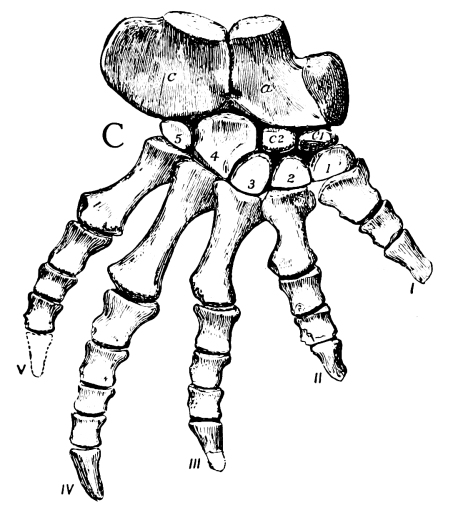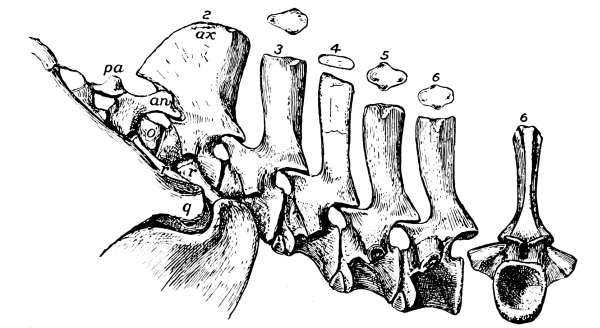 Huxley believed that the great class of mammals arose directly from the amphibians, and there are some zoölogists even yet who think that he was right. But paleontologists are now quite sure that they were [Pg 3] evolved from a group of primitive reptiles, known chiefly from Africa, called the Theriodontia; quite sure because nearly all the connecting links between the two classes have already been discovered—to such an extent, indeed, that really nothing distinctive of either class is left save the presence or absence of the peculiar bone called the quadrate, the bone with which the lower jaw articulates in birds and reptiles; and certain elemental parts of the lower jaw itself. And even these bones, in certain mammal-like reptiles, had become mere vestiges. Even the double condyle of the mammal skull, with which the vertebrae articulate, so like those of the amphibian skull that Huxley based his belief of the amphibian origin of the mammals chiefly upon it, has now been found in certain reptiles. Warm-bloodedness, one of the diagnostic characters of birds and mammals, is not really very important, since it must have arisen in these two classes independently, and we may easily conceive that the earliest mammals were cold-blooded or that the immediate ancestors of the mammals were warm-blooded.