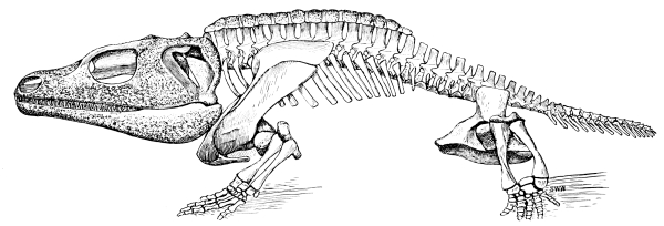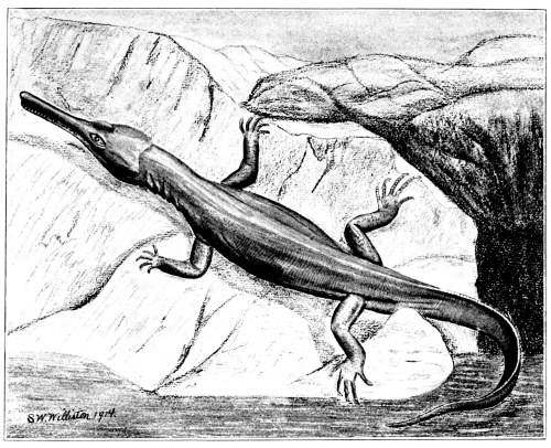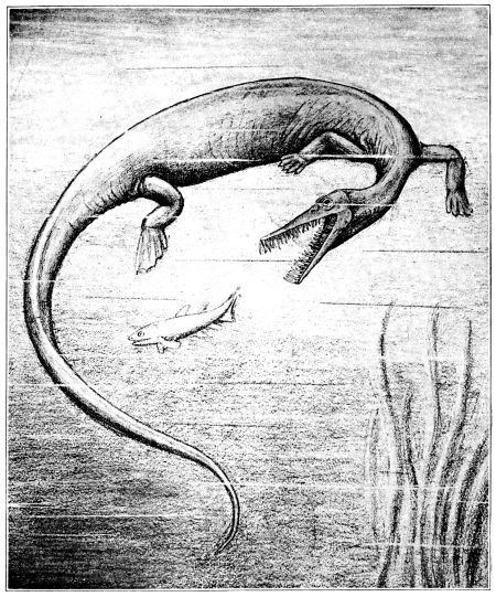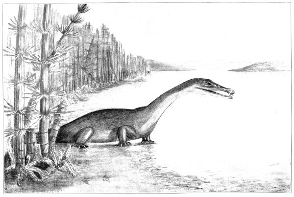 Those broken and incomplete specimens, now preserved in the museum of Yale University, will best explain why this little book was written. The author offers it, so far as lies within him, as an authoritative and accurate account of some of the creatures of earlier ages which sought new opportunities by going down from the land into the water. So far as possible he has endeavored to make the text understandable, and, he hopes, of interest also, to the non-scientific reader. He will not apologize for such scientific terms as remain, since only by their use can precision be attained: there are no common English equivalents for them. The reader will find their explanations in the chapter on the skeleton of reptiles, and especially in the illustrations.