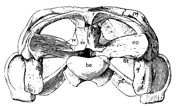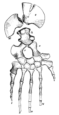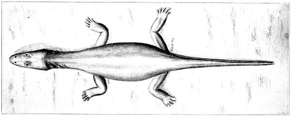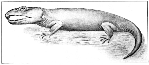 In many respects the internal structure of the amphibians of the present time is widely different from that of reptiles, though there can be no doubt that the early amphibian ancestors of the modern toads, frogs, and salamanders were also the ancestors of all living and extinct reptiles, and it is a fact that the living amphibians differ more from some of the ancient ones than those early amphibians did from their contemporary reptiles. Discoveries in recent years have bridged over nearly all the essential differences between the two classes so completely that many forms cannot be classified unless one has their nearly complete skeletons. We know that some of the oldest amphibians, belonging to the great division called Stegocephalia, were really water-breathers during a part of their lives, because distinct impressions of their branchiae, or water-breathing organs, have been discovered in the rocks with their skeletal remains, but we are not at all sure that some of the more highly developed kinds were not air-breathers from the time they left the egg; indeed, we rather suspect that such was the case.