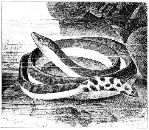 There are now living upon the earth more than four thousand kinds or species of cold-blooded animals which we call reptiles, all of which are easily distinguishable into four principal groups: the serpents and lizards, the crocodiles, the turtles, and the tuatera. Their habits and forms are very diverse, but they all possess in common certain structural characters which sharply distinguish them from all other living creatures. A reptile may be tersely defined as a cold-blooded, backboned animal which breathes air throughout life. And yet, it is not quite certain that this definition is strictly correct when applied to all the reptiles of the past, since it has been believed that certain extinct ones may have been warm-blooded. By this definition, short as it is, we at once exclude a large number of cold-blooded, air-breathing, backboned animals which were formerly included by scientific men among the true reptiles, and even yet are popularly often so included—the amphibians or batrachians. These animals, now almost wholly represented by the despised toads, frogs, [Pg 2] and salamanders, were, very long ago, among the rulers of the land, of great size and extraordinary forms. But they have dwindled away, both in size and in numbers, till only a comparatively few of their descendants are left, none of them more than two or three feet in length, and all of them sluggish in disposition and of inoffensive habits. While we may speak of the amphibians as air-breathing, they are, with few exceptions, water-breathers during the earlier part of their existence. Some may pass their whole lives as water-breathers, while a few begin to breathe air as soon as hatched from the egg; but these are the marked exceptions.
