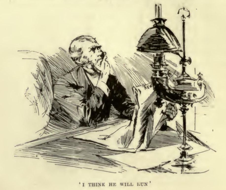 That was not a very propitious beginning; and Mr. Mafferton's further apology for not being able to take me down to dinner, on the ground that he had to be taken down by the butler himself, did not help matters in the very least. At dinner I sat upon Mr. Mafferton's right, with the coiling length of the speaking-trumpet between us. The brother came in just before we went down—a thin young man with a ragged beard, a curate. Of course, a curate being there, we began with a blessing.