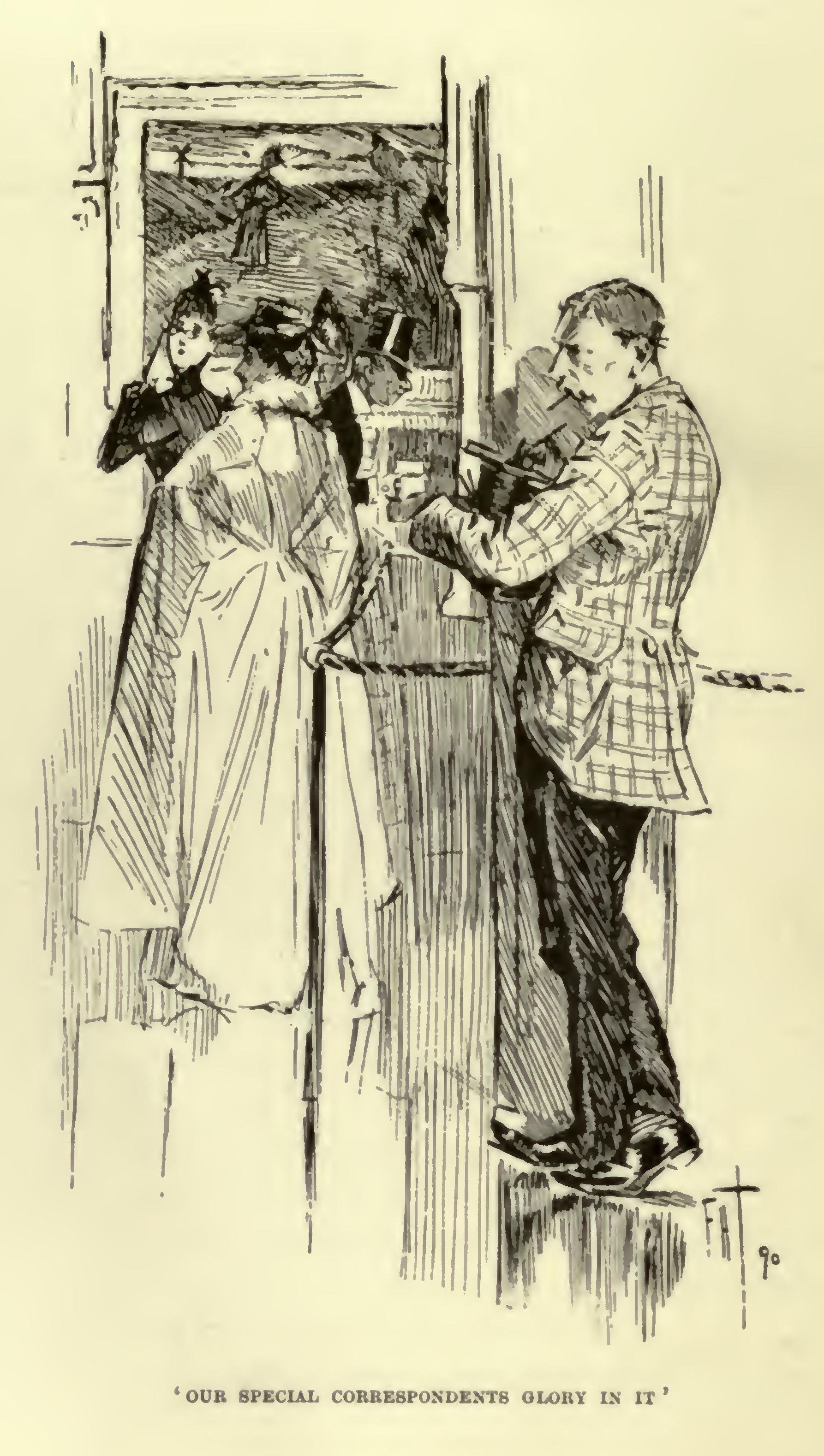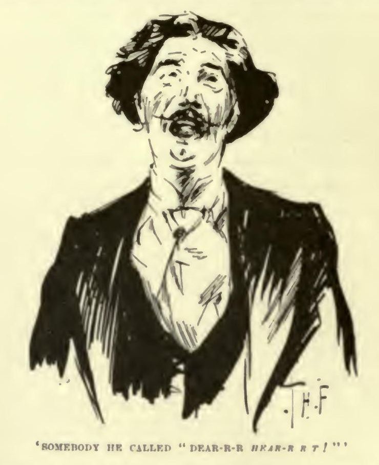Then the eldest Miss Mafferton put one end of a long black speaking-trumpet into my hand, and Mr. Mafferton, seeing her do this, applied the other to his ear. I had nothing whatever to say, but, overcome with the fear of seeming rude, I was raising it to my lips and thinking hard when I felt two anxious hands upon my arm. 'Do excuse us!' exclaimed a Miss Mafferton, 'but if you wouldn't mind holding it just a little farther from your lips, please! We are obliged to tell everybody. Otherwise the voice makes quite a distressing noise in his poor ears.' At which every semblance of an idea left me instantly. Yet I must say something—Mr. Mafferton was waiting at the other end of the tube. This was the imbecility I gave expression to. 'I came here in a cab!' I said. It was impossible to think of anything else.