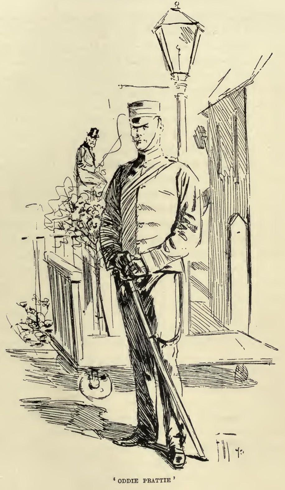 'Here you are,' said somebody close behind us. 'How d'ye do, Auntie? How d'ye do, Miss Wick? 'Pon my word, I'm awfully sorry I missed you before; but you're all right, aren't you? The brute of a policeman at the gates wouldn't pass a hansom.' It was Mr. Oddie Pratte, of course, looking particularly handsome in his red-and-plaid uniform, holding his helmet in front of him in the way that people acquire in the Army, and pleased, as usual, with the world at large.