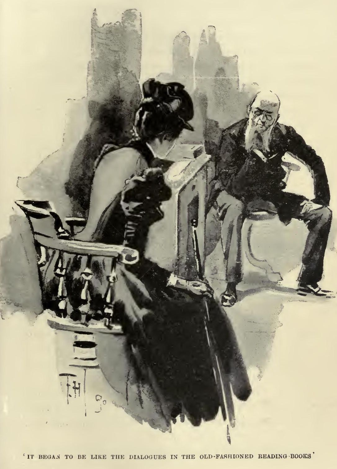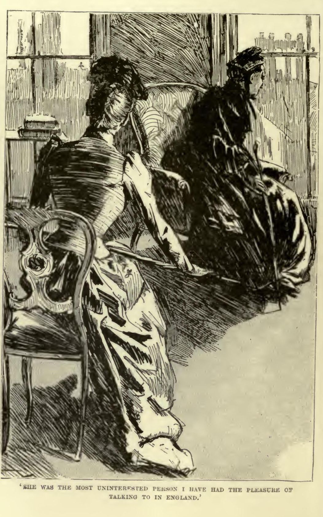 I ONCE visited the Wastgagles in Boston with momma. It was a visit of condolence, just after the demise of a grandmother of theirs. I was going to say, that never since that occasion had I experienced anything like the solemnity of my breakfast at the Métropole the morning after I arrived. As a sad-faced waiter with mutton-chop whiskers marshalled me across the room to an empty little white-and-silvery table beside one of the big windows, I felt, for the first time in my life, that I was being made imposing, and I objected to the feeling. The place itself did not impress me particularly—in America we are accustomed to gorgeousness in our hotels, and the mirrors and the gilding of the Métropole rather made me feel at home than otherwise; but it was the demeanour of everything that weighed upon me. My very chair lived up to its own standard of decorum; and the table seemed laid upon a pattern of propriety that it would never willingly depart from. There was an all-pervading sense of order in the air I couldn't make out exactly where it came from, but it was there, and it was fearful. The waiters spoke to each other in low tones, as if something of deep and serious importance were going on; and when I told one of them what I should like from the bill-of-fare, he bent down his ear and received my order as if it had been confidential State business I was asking him to undertake. When he came back, carrying the tray in front of him, it was almost processional. And in the interval, when I turned round to look out of the window, and saw another of those respectfully-subdued waiters standing behind my chair, quite motionless, I jumped. A great many people were getting their breakfasts, not with the cheerful alacrity which we use at home, but rather with a portentous deliberation and concentration which did not admit of much talking. The silence was broken only in one corner, where a group of Americans seemed to have got accustomed to the atmosphere. When the English breakfasters raised their eyes from their papers and eggs-and-toast, they regarded my talkative compatriots with a look which must have fairly chilled their tea. I hope nobody has ever looked at me like that in England. The Americans were from Virginia, as I could tell by their accent, and their 'c'y'arn't' and 'sis'r' and 'honey' and 'heap better.' But I have no doubt the English people, in their usual loftily comprehensive fashion, set the strangers down as 'Yankees,' and no amount of explanation could have taught them that the 'Yankees are the New Englanders, and that the name would once have been taken as an insult by a Southerner. But the Virginians were blissfully indifferent to the British estimate of themselves, and they talked as freely of their shopping and sight-seeing as they would in Delmonico's or the Brunswick. To be perfectly honest, a conviction came to me then that sometimes we don't care enough. But, for my part, I liked listening to that Virginian corner.