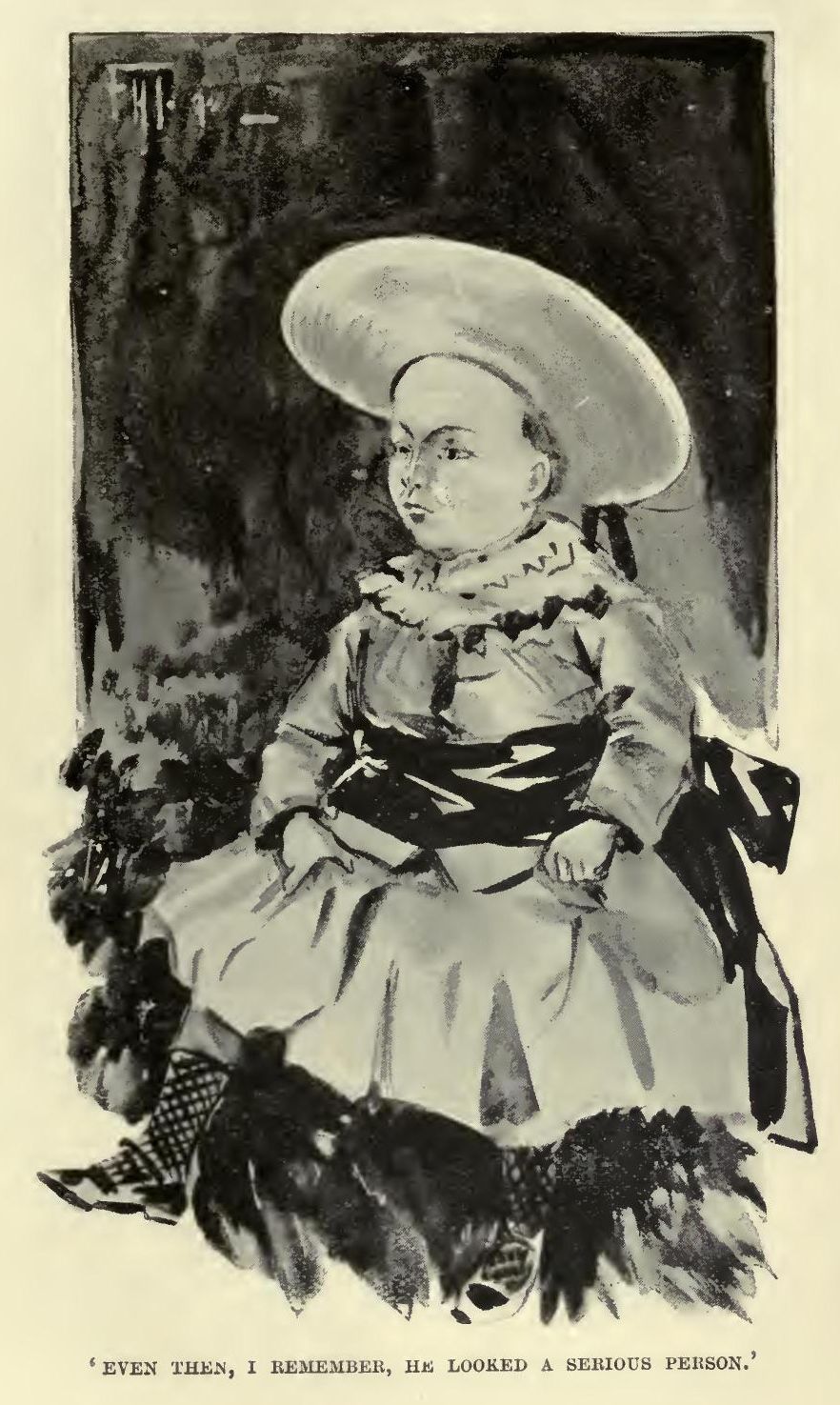 Then, after dinner, in the drawing-room, Mrs. Mafferton took me aside 'for a little chat,' and told me what a good son Charles had always been, and showed me several photographs of him at earlier stages, from the time he wore a sash and pinafore. Even then, I remember, he looked a serious person.