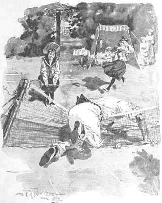 They come from the East and from the West, and from school in Germany. They come to make the acquaintance of their Anglo-Indian fathers and mothers, to teach the Bible and plain sewing in the Zenanas, to stay with a married sister, to keep house for a brother who is in the Department of Police. In the hot weather a proportion migrate northward, to Darjeeling, or Simla, in the Hills, but there are enough in our midst all the year round to produce a certain coy hesitancy and dalliance on the part of pretending bachelors, augmented by the consideration of all that might be done in England in three months’ “Privilege” leave. Young Browne was an example of this. There was no doubt that young Browne was tremendously attracted by Miss Pellington—Pellington, Scott & Co., rice and coolies chiefly, a very old firm—down from the Hills for her second cold weather, and only beginning to be faintly spoilt, when it so happened that his furlough fell due. He had fully intended to “do Switzerland this time,” but Canbury, with tennis every Wednesday afternoon at the Rectory, and Helen Peachey playing there in blue and white striped flannel, pink cheeks and a sailor hat, was so much more interesting than he had expected it to be, that Switzerland was gradually relegated five years into the future. After tennis there was always tea in the drawing-room, and Helen, in the pretty flush of her exertions, poured it out. Just at first, young Browne did not quite know which he appreciated most, Helen who poured it out, or the neat little maid in cap and apron who brought it in—it was so long since he had seen tea brought in by anything feminine in cap and apron; but after a bit the little maid sank to her proper status of consideration, and Helen was left supreme. And Helen Peachey’s tennis, for grace and muscularity, was certainly a thing to see, young Browne thought. She played in tournaments while he stood by in immaculate whites with an idle racquet, and got middle-aged ladies of Wiltshire cups of tea; but she was not puffed up about this, and often condescended to be his partner on the Rectory lawn against the two younger Misses Peachey. It made the best sett that way, for young Browne’s tennis fluctuated from indifferent bad to indifferent worse, and the younger Misses Peachey were vigorous creatures, and gave Helen all she could do to win with her handicap.
