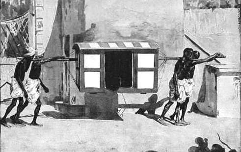 Leaving the Snows with grief, therefore, they left the ekka with trusting faith. There had been a hitch in the process of packing, examination, consultation. The sahib, inquiring, had been told that one of the wheels was “a little sick.” It was an excellent ekka—an ekka with all the qualities; the other wheel was quite new, and you did not often find an ekka with an entirely new wheel! But the other was certainly a little old, and after these many miles a little sick. Young Browne diagnosed the suffering wheel, and made a serious report; there were internal complications, and the tire had already been off seven times. Besides, it wouldn’t stand up; obviously it was not shamming, the purana chucker[141] was taken bad, very bad indeed. Its cure could be accomplished, however, with wet chips and a hammer—and time. If the sahib would permit, the ekka would follow in half an hour.
