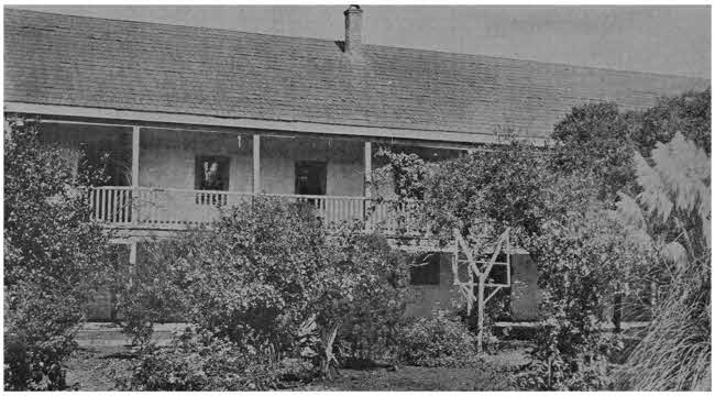 At the rear of this house was a low porch, without a railing, where the carriages drove up many times a day, for, with the large family, the wide acres, and active business, there was much coming and going. This veranda served as an annex to the dining room. In those days fruit came after breakfast instead of before, and it was here that we ate it, tossing the squeezed oranges and the scalloped watermelon rinds into a conveniently placed box that was frequently emptied.