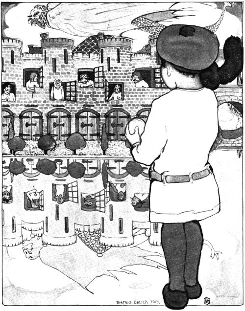 They soon reached the top, and before them, stretched the Looking-glass Sea. Directly opposite stood the gray castle belonging to the six giants. It had six enormous doors, six enormous windows, one over each door, and also six chimneys. It stood so close to the edge of the sea, that Teddy saw its reflection quite clearly, which made it seem twice its real size. He stared at the castle in hopeless despair.