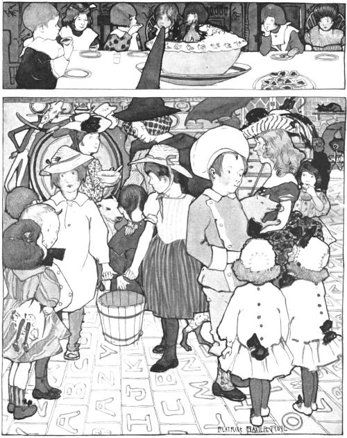 So Mother Goose had decided to invite the children, that is, the best and nicest only, those who didn't cry when they were being dressed, or when there was no jam for supper. They were to come in the evening, for that is the time when they can reach Fairyland by the shortest way, and she was going to ask all the most interesting people of the "Rhymes and Jingles" to help entertain them.