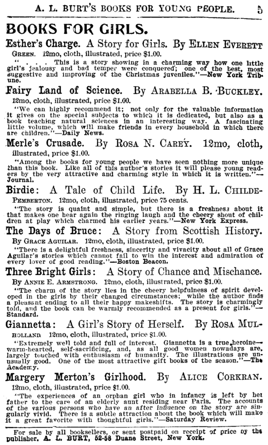 Her school had never been fuller than it promised to be on the opening of this new year. Through the summer vacation letters had been coming to her from all parts of the country asking to put girls who 7 had finished graded and high school education under her care. Established for many years, the academy had grown from what, in the religious world, was considered a “missionary training-school,” and from which many able and faithful women had gone forth to win laurels in the over-ripe harvest fields, to a school better adapted to the wants of the nineteenth century.