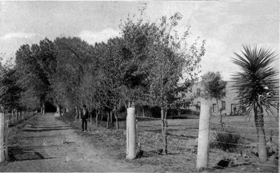 To-day the sky is one cloudless arch of sapphire! The light breeze scarce ruffles a leaf of the tall alamo, the name tree of this ranch. Here any holding bigger than a kitchen garden is known as a ranch. The alamo, Spanish for poplar, lends here and there its scant, stiff shade to this roomy adobe dwelling, with its warm southern frontage and half-detached wings. Behind the house irregular out-buildings are scattered about.