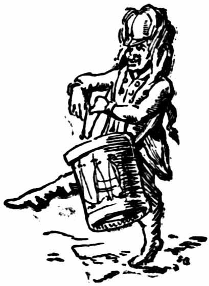 It is but fair to our Caricaturist to say that the fair Pittite champion, Lady Buckingham, is treated no less mercilessly; and that, even while he was aiming the most outrageous shafts of ridicule and innuendo at the Duchess, his pencil did justice to her extraordinary beauty and charm, both in the prints above mentioned, and in a "Procession to the Hustings after a successful Canvass," in which she[Pg 81] leads the way in a big picture hat, and carrying a perfectly indescribable ensign with "The Man of the People" as its legend. Finally, "The Westminster Mendicant" and the "Westminster Deserter drummed out" complete this really brilliant series of election caricatures, of which I have only detailed the most interesting. In the last-named print it is "brave baldheaded" Sam House who beats the drum, while on his left is the triumphant candidate, Charles James Fox, who addresses the crowd with the time-hallowed words, "Friends and fellow citizens, I cannot find words to express my feelings, etc.," and on his right the defeated Sir Cecil Wray; while behind are the Irish chairmen who had fought (in every sense of the word) so lustily for Fox, and a procession of London maidservants, armed with mops and brooms.
