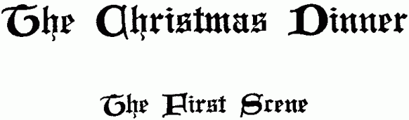 Well, well, well, well, well, here we all are again. And what's more important, Christmas is here again, too. Aren't you glad? Now I want to tell you children something. Do you know what I enjoy most at Christmas time? It's to come in here and see all you children sitting in rows and rows, all your faces looking up at me, and a smile on every one of them. Why, even some of those great big men and women back there are smiling, too. And I think I know why you are all smiling. There are two reasons for it, I believe. One is that you think old Mother Goose is a good friend of yours, and loves you all very much. And you're quite right about that, for I declare, I love every one of you as much as I love—plum pudding. And the second reason why you are all smiling, I guess, is because you think I am going to show you a Christmas Play. And you're right about that, too. I have a play all ready for you, there behind the curtain, and the name of it is "The Christmas Dinner." Doesn't the very name of it make you hungry? Well, you just wait. Now when the curtain opens, you'll see the warm cozy kitchen of a farm house, where six people live. Two of them are quite young, because they are just a boy and a girl, and their names are Walter and Gertrude. And two of them are older, and yet not so very old either: they are the father and mother of the two children. And the last two are the oldest of all, and they are really old, for they are the children's grandfather and grandmother. It is late in the afternoon of the day before Christmas, the hour when it has begun to get dark. The father is out cutting some good big sticks of wood for the Christmas fire, and the two children are playing outside of the house. So you'll not see them at first. But you will see the mother, who is just finishing the day's work, and the old grandfather and grandmother, who are sitting by the fire. Are you ready, all of you? Be quiet, then, for now it is going to begin.