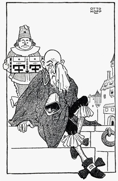 "Your Royal Highnesses are most condescending,"[Pg 22] said the polite little Admiral gratefully, bowing once more, though this time with greater caution. "The fact is," he went on to explain, "I had the misfortune to fall into the sea yesterday and my joints became swollen in consequence."