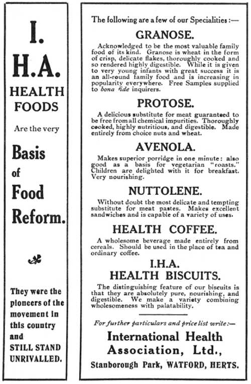 Advocates the adoption of a natural and hygienic dietary as a preventive of Disease, a practical remedy for Physical Deterioration, and an efficacious way of lessening human suffering and sub-human pain.