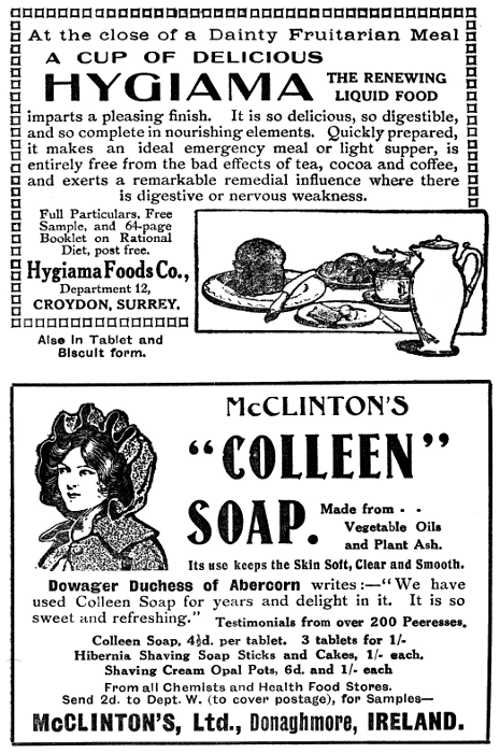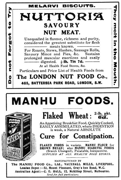 The number and variety of such fruits and seeds is very great (including all the nuts and cereals and their products, as well as the pulses, legumes, etc.); and the Science of Dietetics has made such rapid progress in recent years that nuts and grains are, for the benefit of those who possess weakened digestive organs, now prepared in various 14 ways which make them easily digestible and very savoury when cooked. To such foods may be added, for the sake of convenience and variety, vegetables of various kinds and dairy produce, such as milk, butter, cheese and eggs.