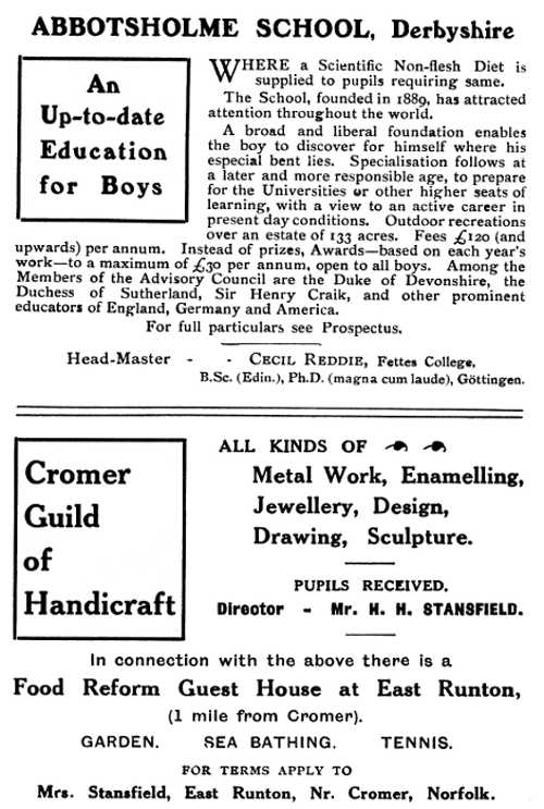 As I am writing a Guide to reformed diet for domestic use—not an elaborate treatise to justify it—I have refrained from introducing medical and experimental testimony concerning the dangerous and injurious nature of flesh-food, and the advantages of living upon the fruits of the earth, supplemented by dairy products. Numerous standard works are now obtainable which demonstrate that the principles and arguments upon which the Food-Reform Movement is based are supported by an array of scientific evidence which is more than sufficient to convince any unprejudiced, logical and well-balanced mind. For such information I must refer my readers to other publications, and I have printed a short list of useful works on the final pages of this book, for the benefit of those who are as yet unacquainted with such literature.