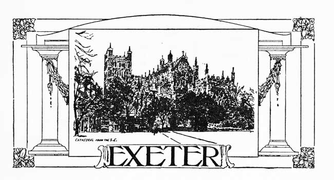 The citizens of Exeter have always been noted for their stanch loyalty to the reigning house, with the consequence that many rights and privileges have been granted to it. The city motto, Semper Fidelis, was conferred by Queen Elizabeth in recognition of the contributions, both of men and money, made to the fleet that vanquished the Spanish Armada. That the motto was merited is evident when we recall the fact that, with the exception of Frobisher and Cavendish, practically the whole of the leading seamen who chased the Spanish ships along the Channel were born in the land of the Tamar, the Tavy, and the Dart.
