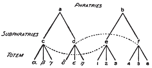 The typical and very often intricate scheme of organization of an Australian tribe therefore looks as follows: