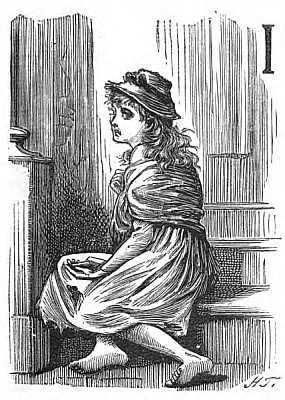 At length the great clocks all around began to strike five, and Benny had not come; a sense of unutterable loneliness crept over the child, and she began to cry. Besides, she was hungry and cold, and there was a great fear in her heart that something had befallen her brother. The last stroke of the Town Hall clock, however, had scarcely died away when she heard the patter of bare feet around the corner, and the next moment her brother, panting and breathless, stood before her.